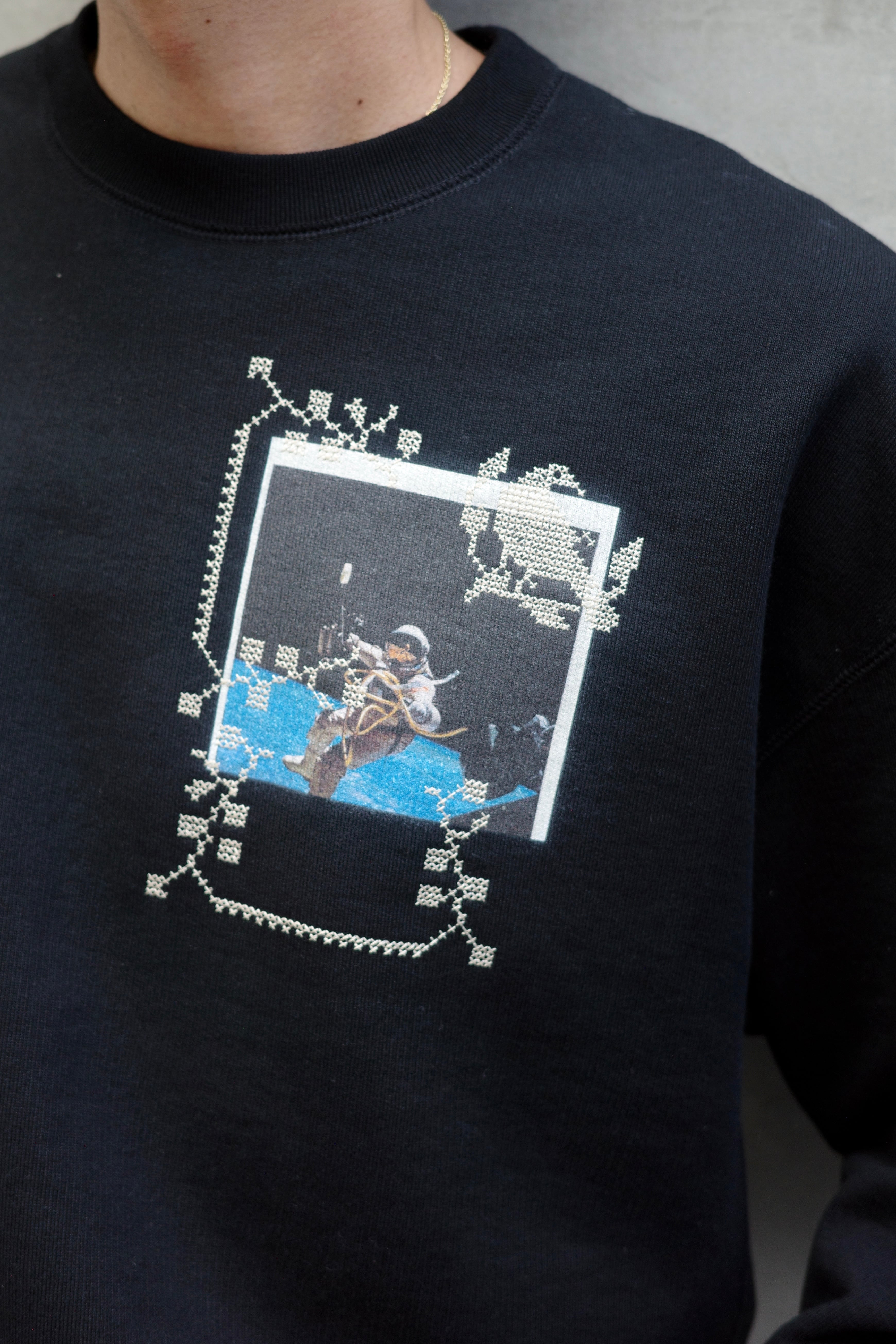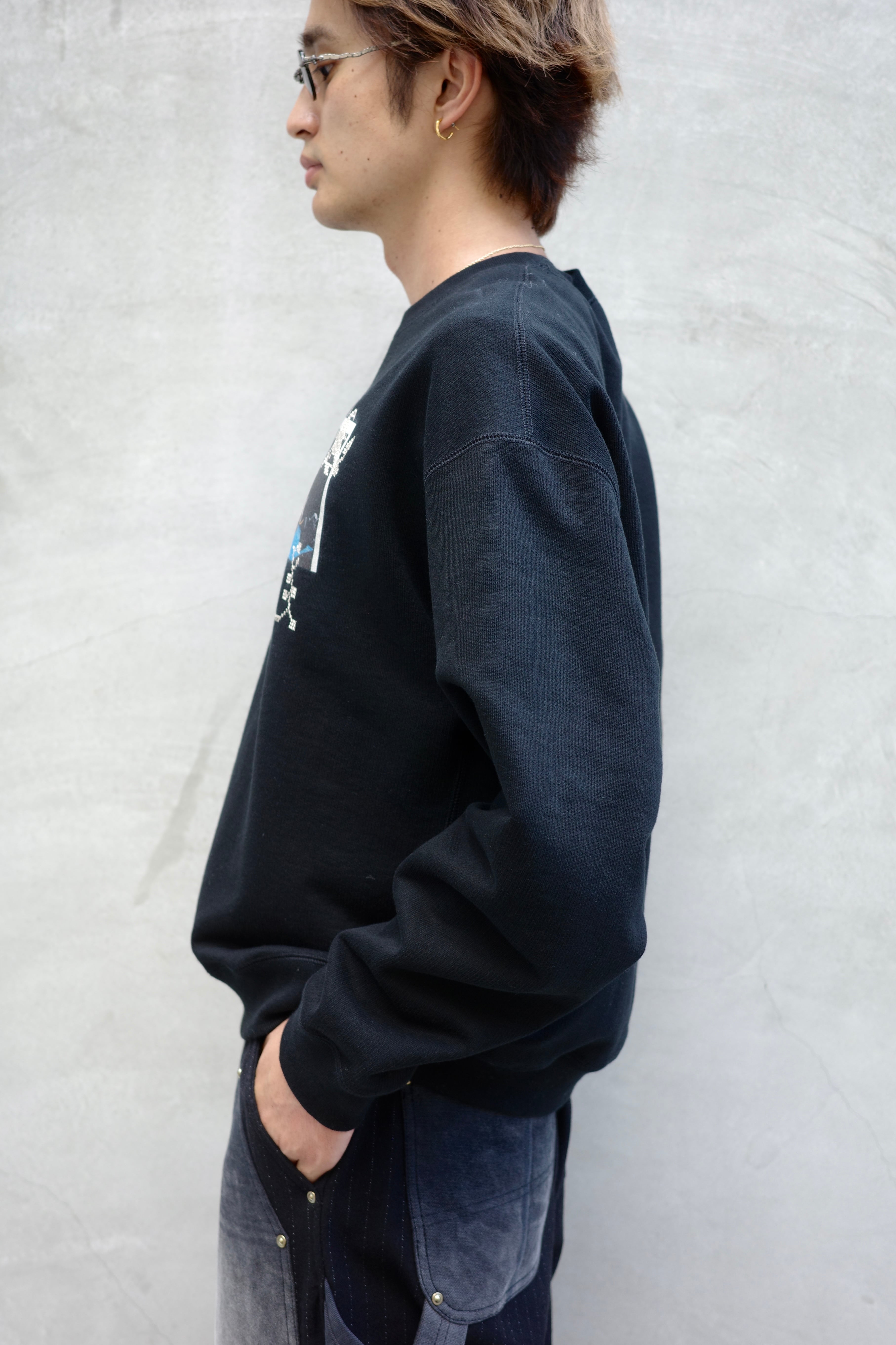 KHOKI 【Embroidery and print design sweat shirt -Black-】