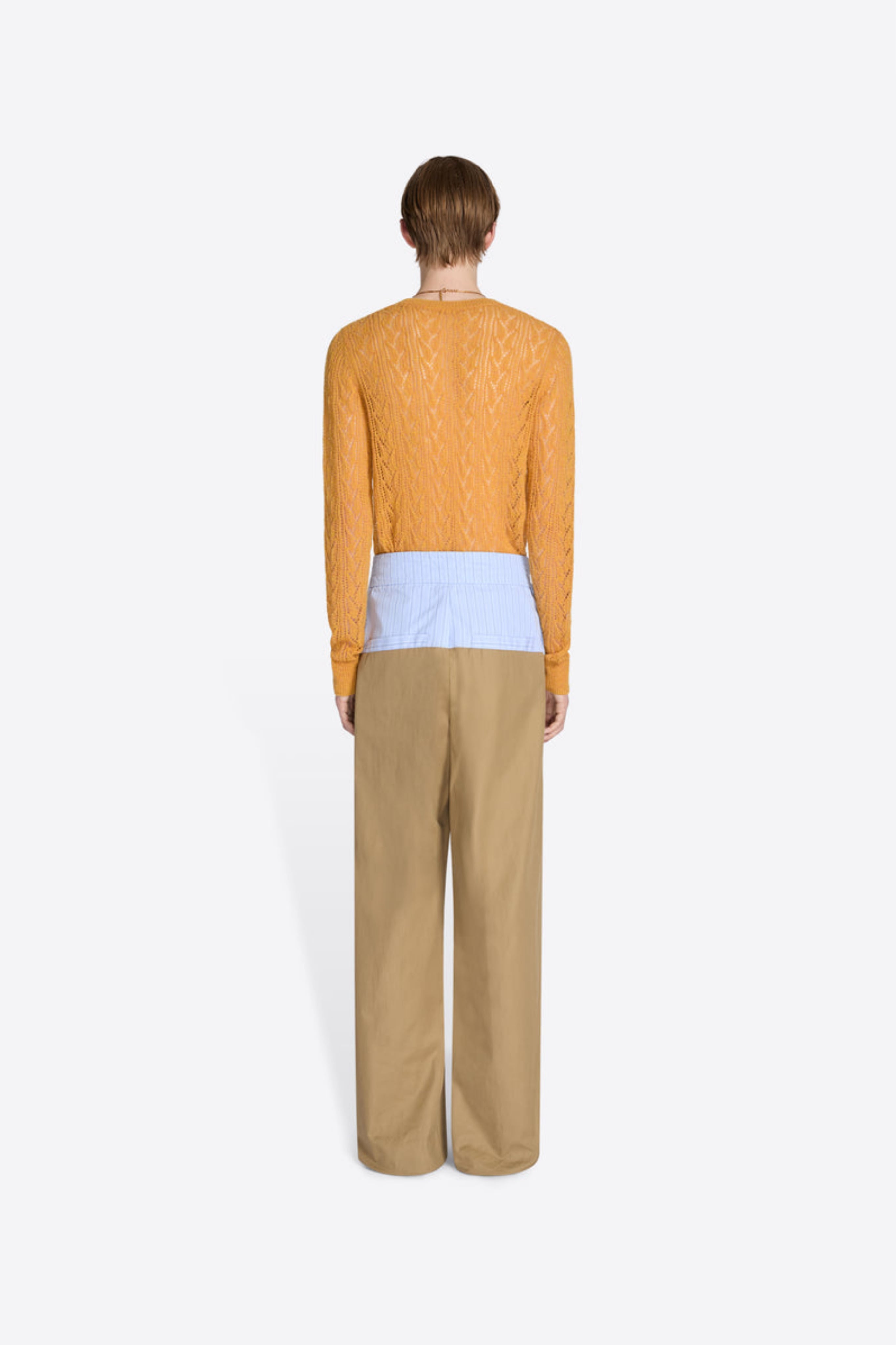 Loose fit high-waisted pants in twill microsand cotton, with upper contrast panel and elasticated waistband.